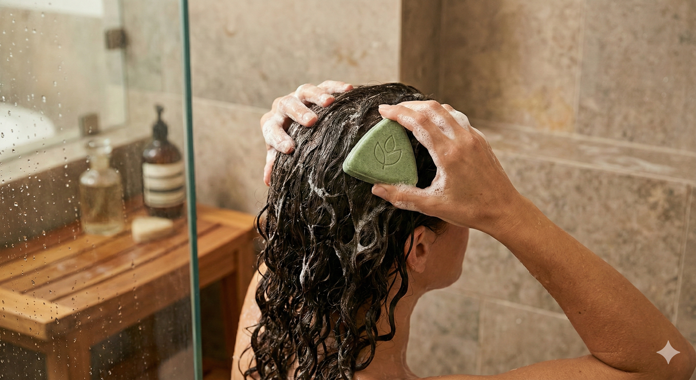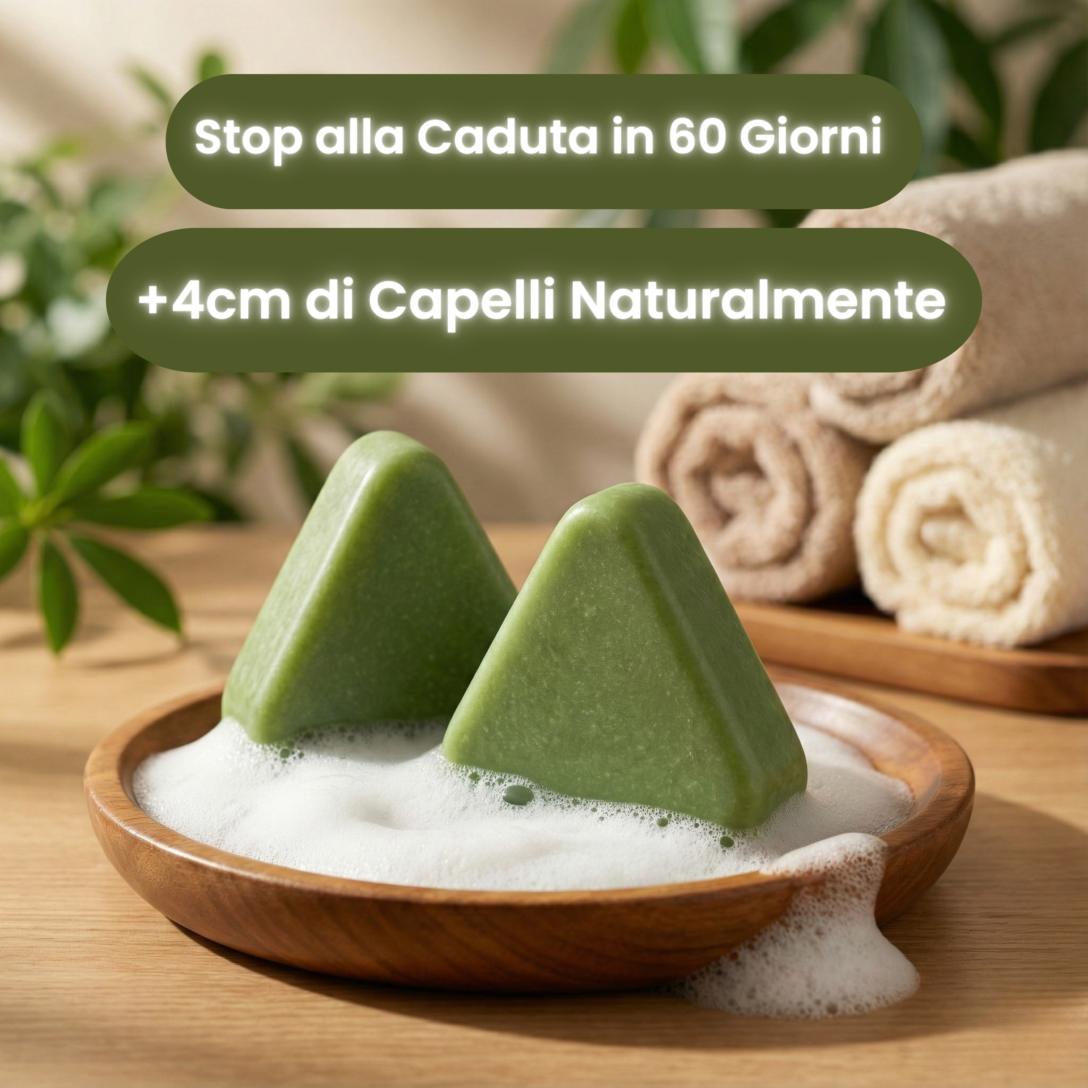 Basta bagnare il panetto, massaggiare sul cuoio capelluto fino a creare schiuma, lasciare agire 1 minuto e risciacquare. Puoi usarlo 2–3 volte a settimana.