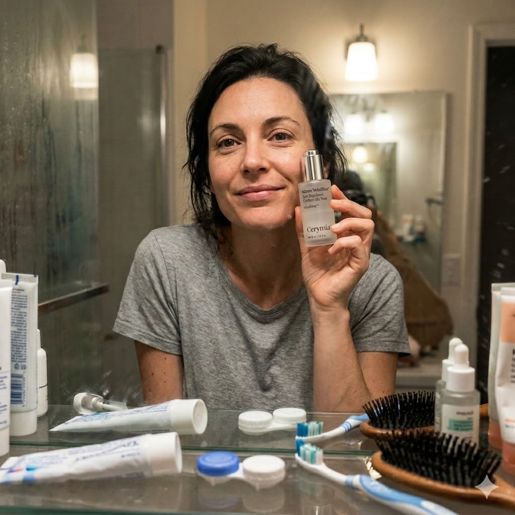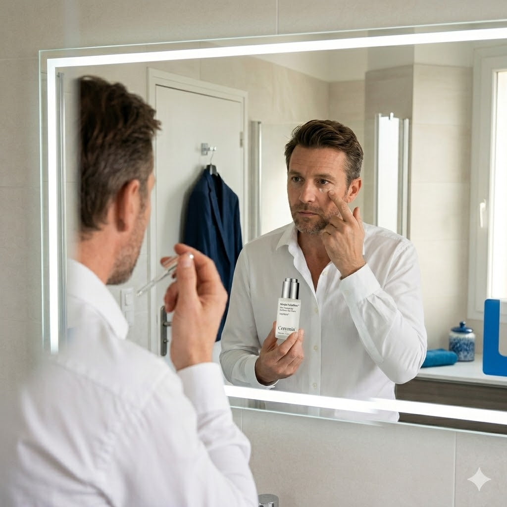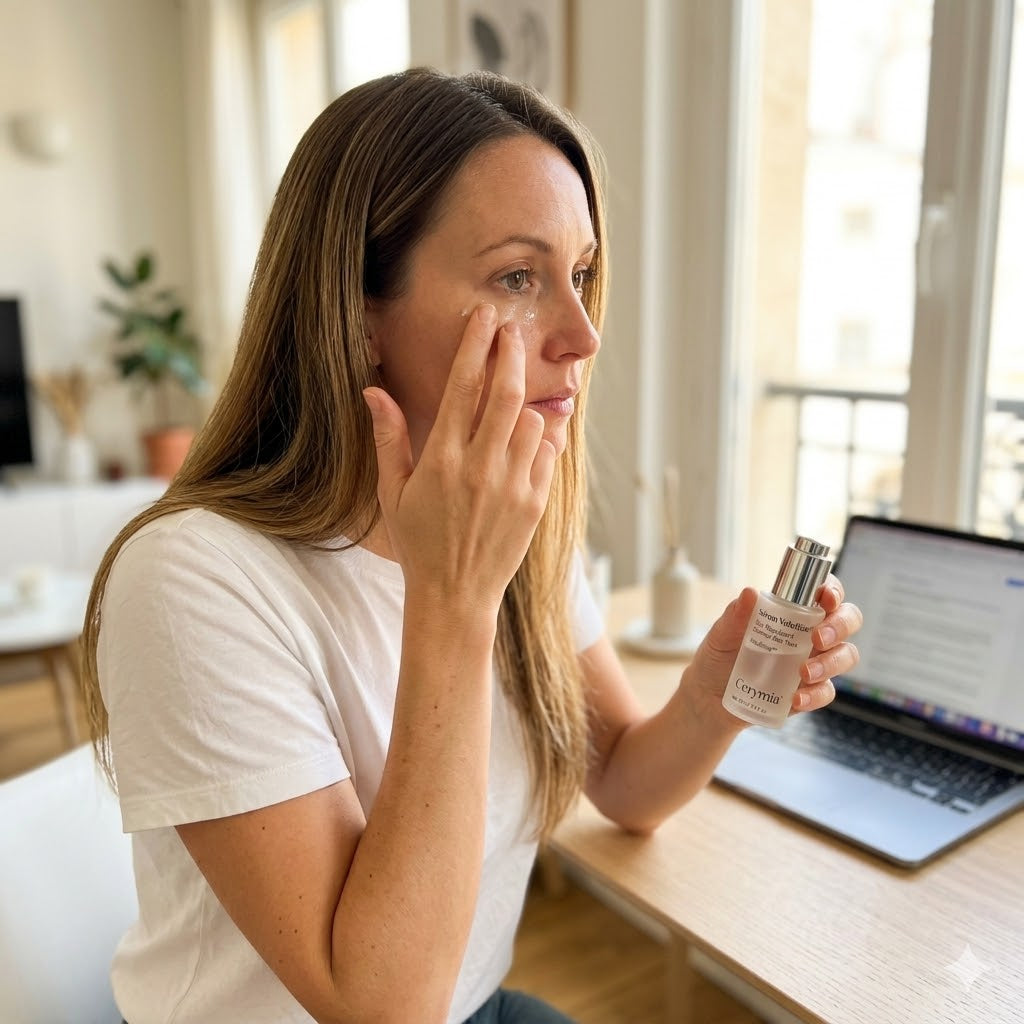 Beaucoup de sérums contour des yeux laissent un film gras, collent sous le maquillage ou mettent des minutes à sécher. Cerymia™ a été formulé pour s'intégrer dans n'importe quelle routine — matin comme soir — sans aucune contrainte. Une texture invisible qui travaille pendant que vous vivez votre journée.