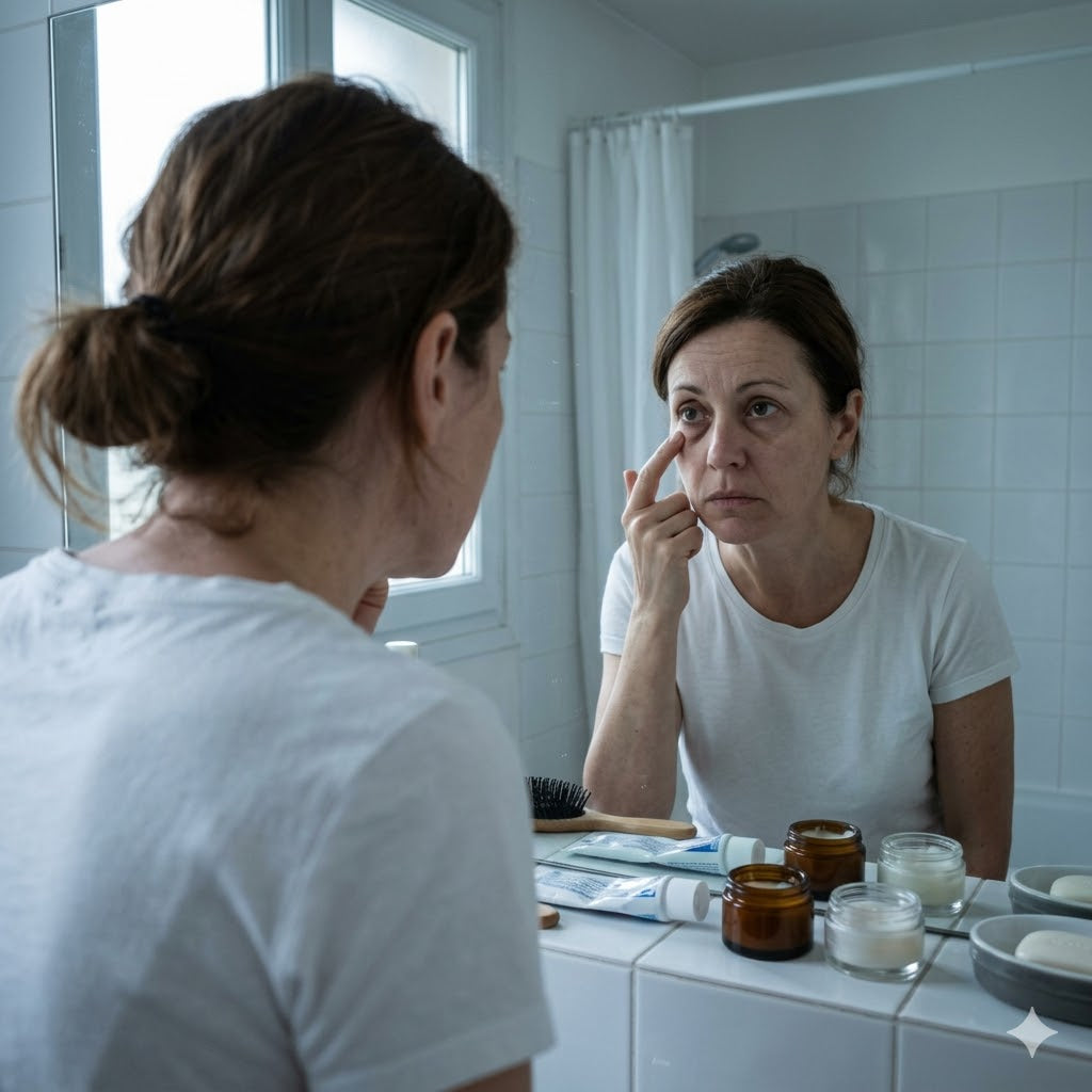Les cernes creusés ne sont pas un problème de fatigue ou de manque d'hydratation. Avec l'âge, la peau perd du volume sous les yeux — les tissus s'affinent, les creux se forment, et le regard paraît fatigué en permanence. Les crèmes classiques n'atteignent pas cette zone. Cerymia™ agit directement sur la cause.